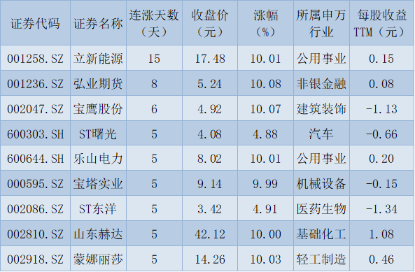 表:連續(xù)上漲5天且今日收盤漲停股一覽