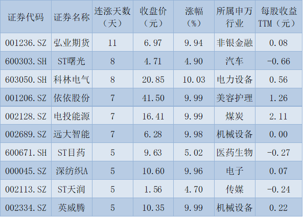 表:連續(xù)上漲5天且今日收盤漲停股一覽