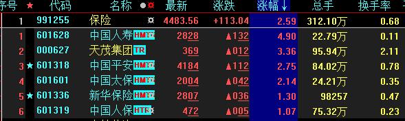 具體看,截至8月24日上午收盤(pán),保險(xiǎn)板塊走強(qiáng),漲幅居首,達(dá)2.59%。其中,中國(guó)人壽、天茂集團(tuán)、中國(guó)平安、中國(guó)太保等個(gè)股漲幅超2%。