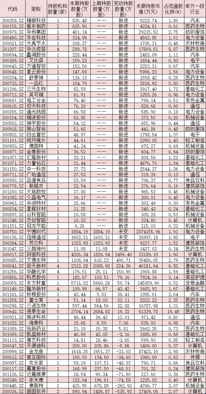 表:今年二季度獲QFII持倉(cāng)的創(chuàng)業(yè)板公司股票