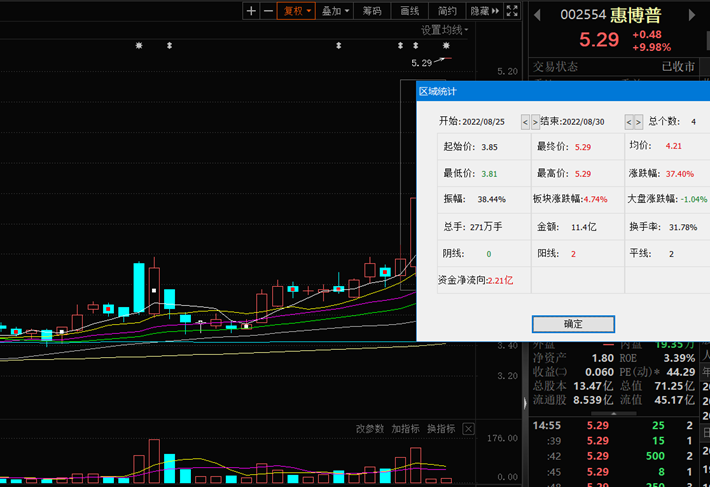 8月30日,惠博普漲9.98%,報5.29元。該股自8月25日以來,截至8月30日已連續(xù)4個交易日上漲,累計漲幅達(dá)37.40%。該股最新A股總市值達(dá)71.25億元,A股流通市值45.17億元。