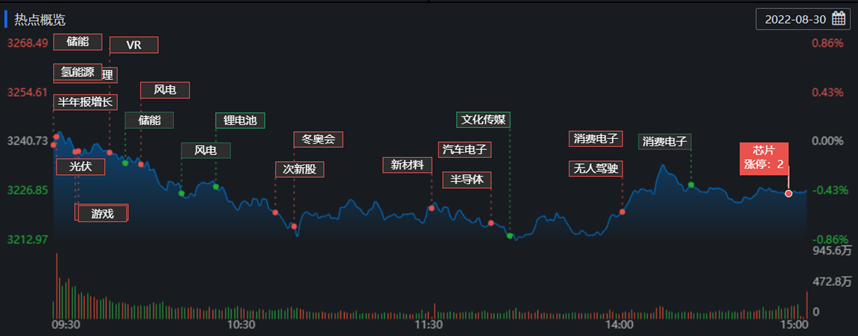 8月30日,A股三大指數(shù)開盤后不斷震蕩走低,至14:00左右滬指在消費電子等板塊帶動下出現(xiàn)回升。截至收盤,上證指數(shù)跌0.42%,深證成指跌0.39%,創(chuàng)業(yè)板指跌0.70%;滬深兩市合計成交額8385.2億元,縮量0.86%;北向資金凈買入-49.80億元;總體來看,A股個股漲少跌多,上漲個股為2213只,下跌個股2540只。