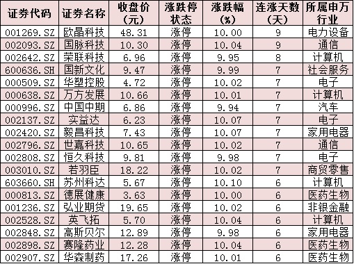 表:連續(xù)上漲6日且今日收盤(pán)漲停個(gè)股情況: