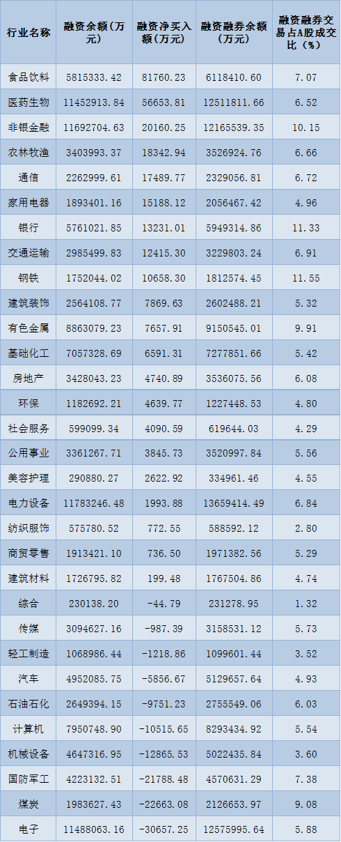 表:10月19日申萬(wàn)一級(jí)行業(yè)兩融交易情況: