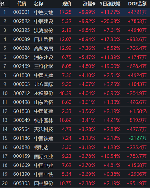 10月21日,申萬(wàn)一級(jí)行業(yè)中建筑裝飾行業(yè)領(lǐng)漲,漲幅達(dá)1.45%,獲得2.66億元大單資金的凈流入,居第三位。行業(yè)157只交易中的個(gè)股,有92只上漲,占比58.60%,其中,6只個(gè)股漲幅超5%。