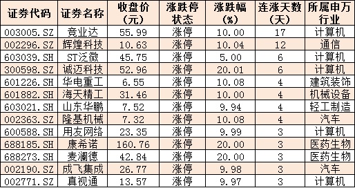 表:連續(xù)上漲3日且今日收盤漲停個股情況:
