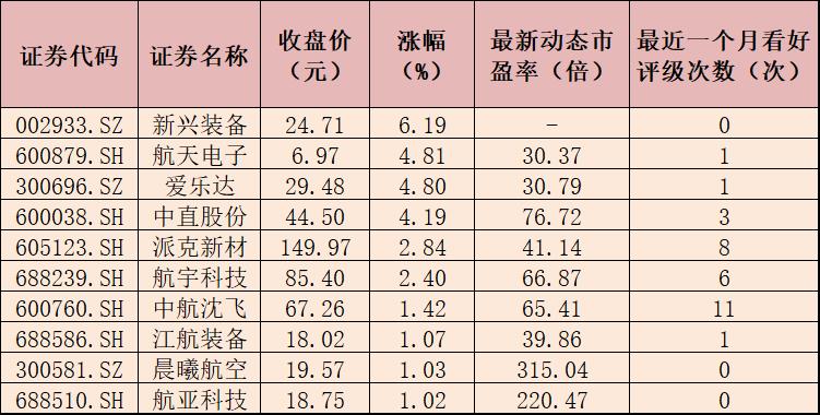 表:11月8日漲幅超1%的航空航天概念股一覽