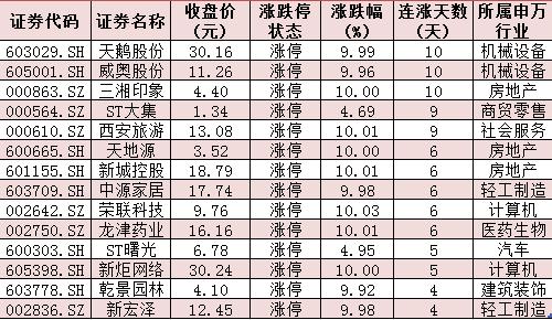 表:連續(xù)上漲4日且今日收盤漲停個(gè)股情況:
