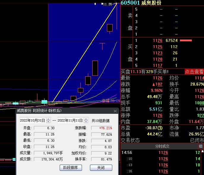 11月11日,熱門股威奧股份再度漲停,截至收盤,報(bào)11.26元,連續(xù)10個(gè)交易日實(shí)現(xiàn)上漲,累計(jì)漲幅達(dá)76.21%。
