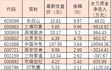 與此同時,部分旅游酒店股也獲得市場主力資金的青睞。11月16日,截至午盤,旅游酒店板塊內(nèi)有22只概念股呈現(xiàn)主力資金凈流入態(tài)勢,占比逾四成。其中,中國中免、宋城演藝獲主力資金凈流入均超千萬元,分別為19594.36萬元、4004.67萬元,北京文化、西安旅游、嶺南控股、西域旅游、華邦健康、歡瑞世紀(jì)、嶺南股份、麗江股份等8只個股主力資金凈流入也均超500萬元,這10只個股合計吸金3.01億元。