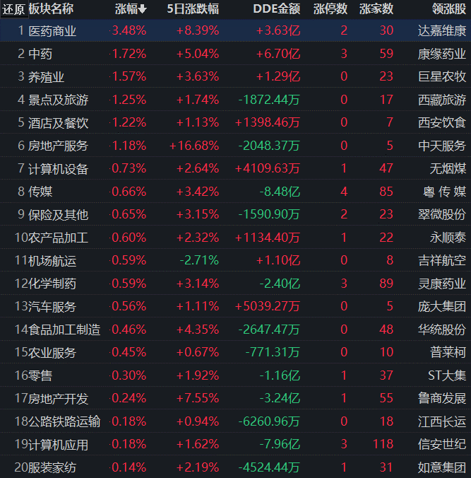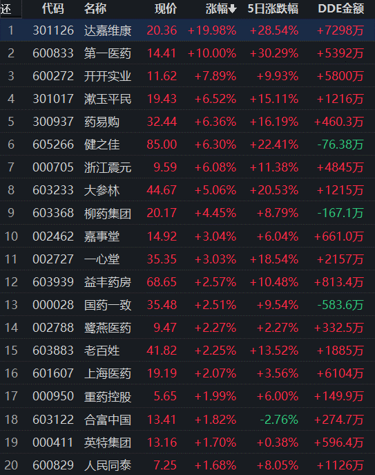 從早盤(pán)表現(xiàn)強(qiáng)勢(shì)的醫(yī)藥商業(yè)行業(yè)看,截至11月17日11:30,該行業(yè)交易中的31只個(gè)股有30只上漲,其中8只漲幅超5%。從資金流向看,該行業(yè)今天上午大單資金凈流入額達(dá)3.63億元,居行業(yè)第2位。