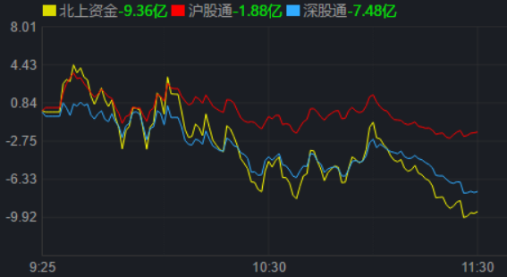 從資金面來(lái)看,11月17日上午,北上資金凈賣(mài)出金額達(dá)9.36億元。