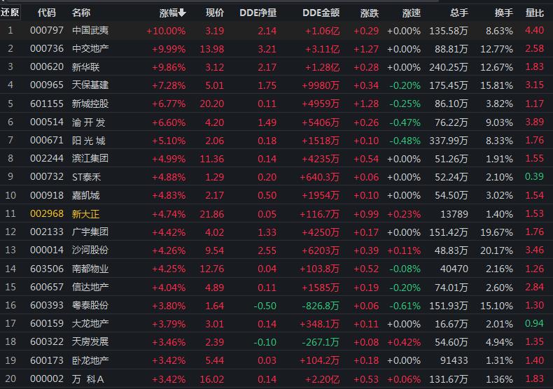11月24日,房地產(chǎn)行業(yè)漲幅居首,達1.85%。其中,ST泰禾、中交地產(chǎn)、中國武夷、新華聯(lián)等4只地產(chǎn)股集體漲停。