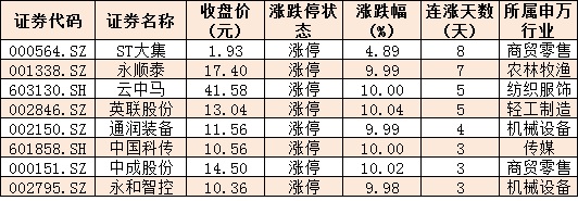 表:連續(xù)上漲3日且今日收盤漲停個股情況: