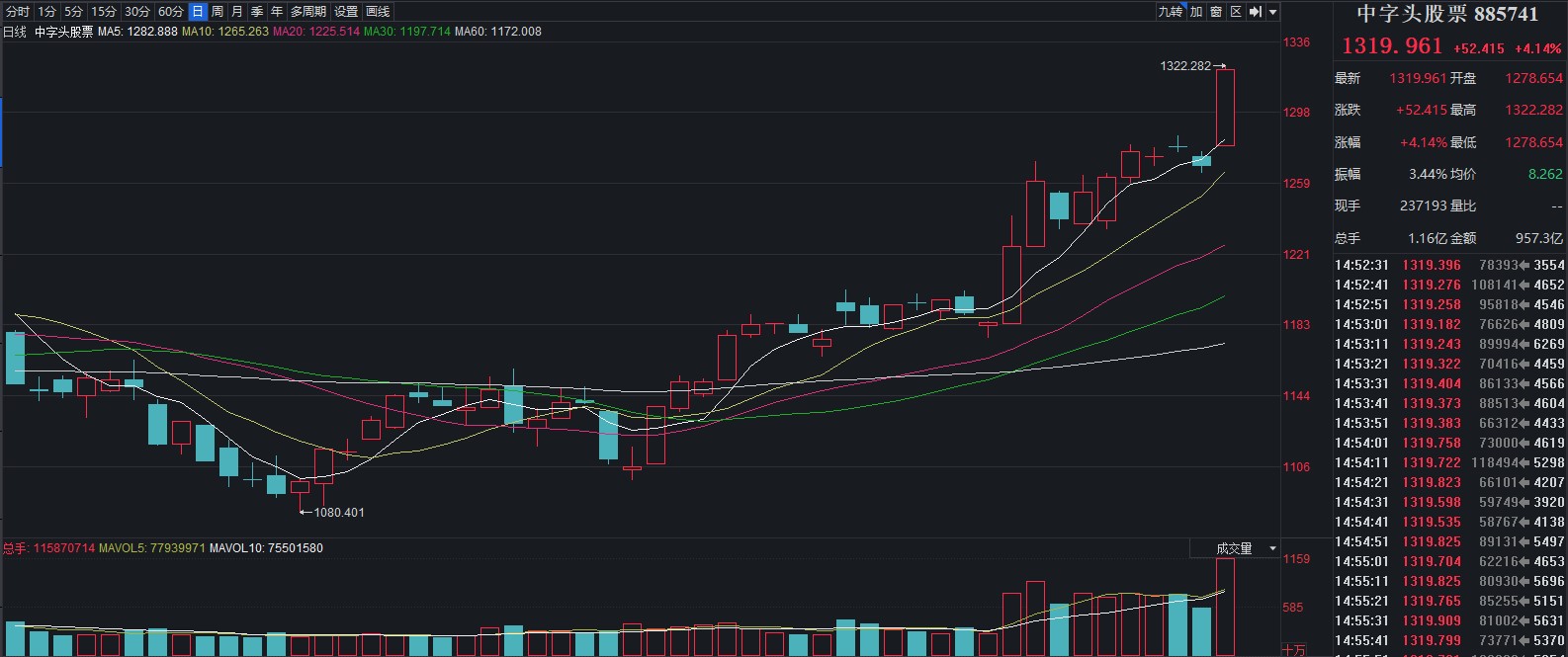 12月5日,中字頭股票板塊表現(xiàn)亮眼,截至收盤,其整體漲4.14%,跑贏上證指數(shù)(漲1.76%)。其中,中航產(chǎn)融、中國高科、中糧資本、中油資本、中國中鐵、中國交建、中公高科、中國海誠、中國鐵建、中國鋁業(yè)等10只概念股集體漲停。