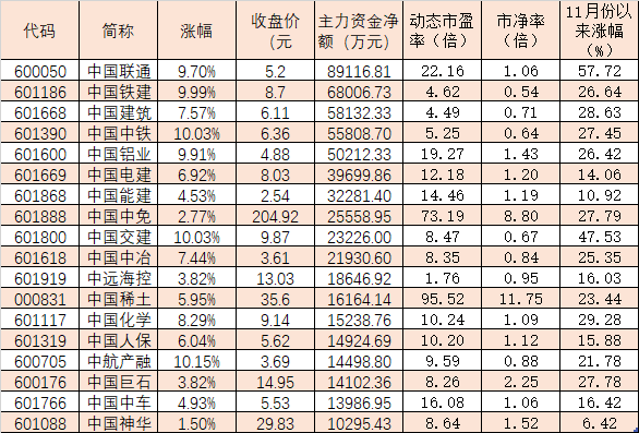 11月份以來截至12月5日,中字頭板塊指數(shù)持續(xù)走強(qiáng),其整體累計(jì)漲幅達(dá)20.25%,跑贏上證指數(shù)(期間累計(jì)漲11%)。其中,中交地產(chǎn)、中油資本、中國科傳、中鐵裝配、中船漢光、中國聯(lián)通、中國海誠等7只概念股期間累計(jì)漲幅均超50%。