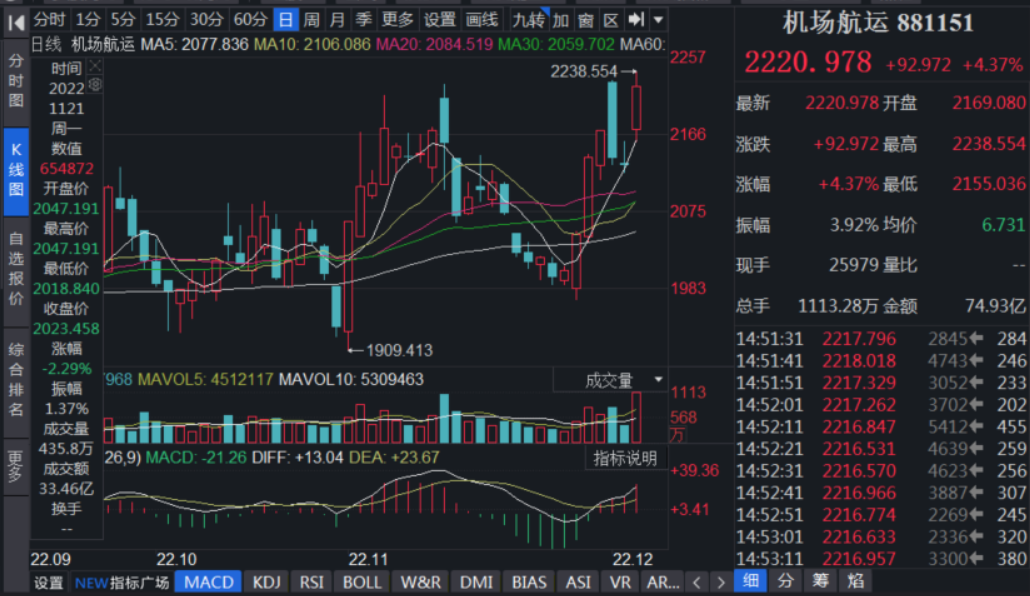 機(jī)場航運(yùn)行業(yè)指數(shù)漲超4% 7只概念股獲機(jī)構(gòu)看好