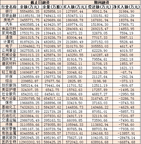 表:12月20日申萬(wàn)一級(jí)行業(yè)兩融交易情況: