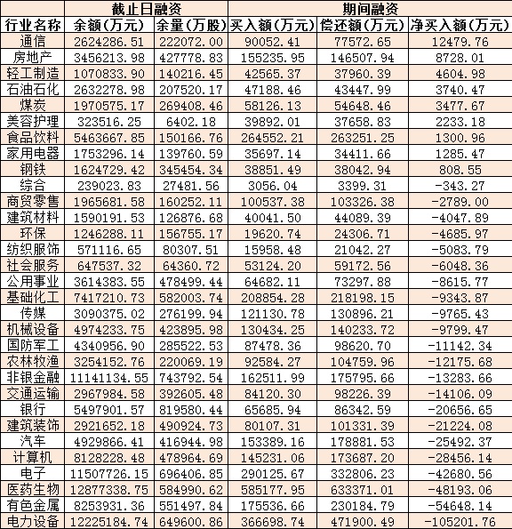 表:12月22日申萬一級行業(yè)兩融交易情況: