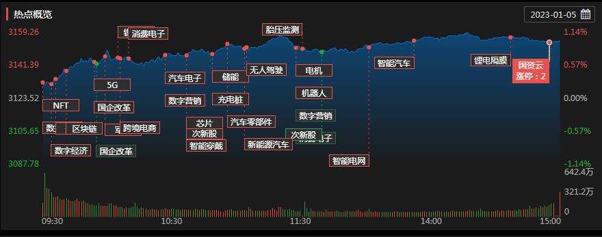 周四(1月5日),A股三大指數(shù)震蕩上行,全線飄紅。截至收盤,上證指數(shù)漲1.01%報3155.22點,深證成指漲2.13%報11332.01點,創(chuàng)業(yè)板指漲2.76%報2399.46點;兩市合計成交8427億元,北向資金凈買入127.53億元??傮w上看,兩市個股漲多跌少,上漲個股近3000只。其中,漲停個股達52只,跌停個股達9只。
