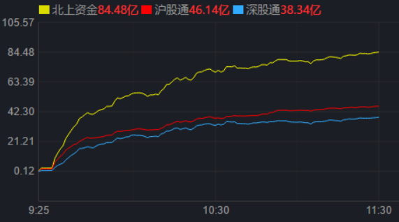 從資金面來看,1月31日上午,北上資金凈買入金額達84.48億元,其中,滬股通凈買入46.14億元,深股通凈買入38.34億元。