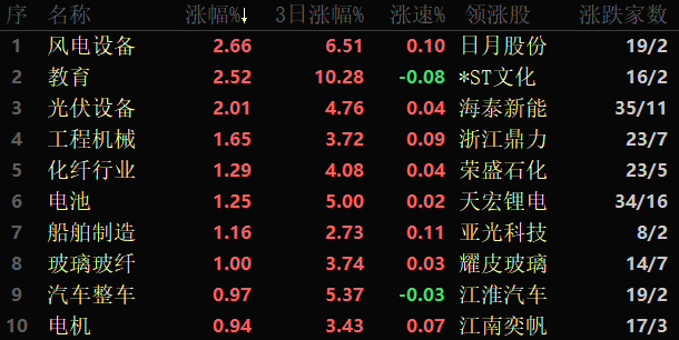 東方財富行業(yè)方面,截至1月31日11:30,86類行業(yè)中43類上漲,占比50%,其中,風電設備行業(yè)漲幅居首,達2.66%;排名第二的是教育行業(yè),漲2.52%。此外,光伏設備行業(yè)漲幅也超過2%。下跌方面,旅游酒店行業(yè)跌幅居首,達2.50%,半導體行業(yè)跌幅也超2%。
