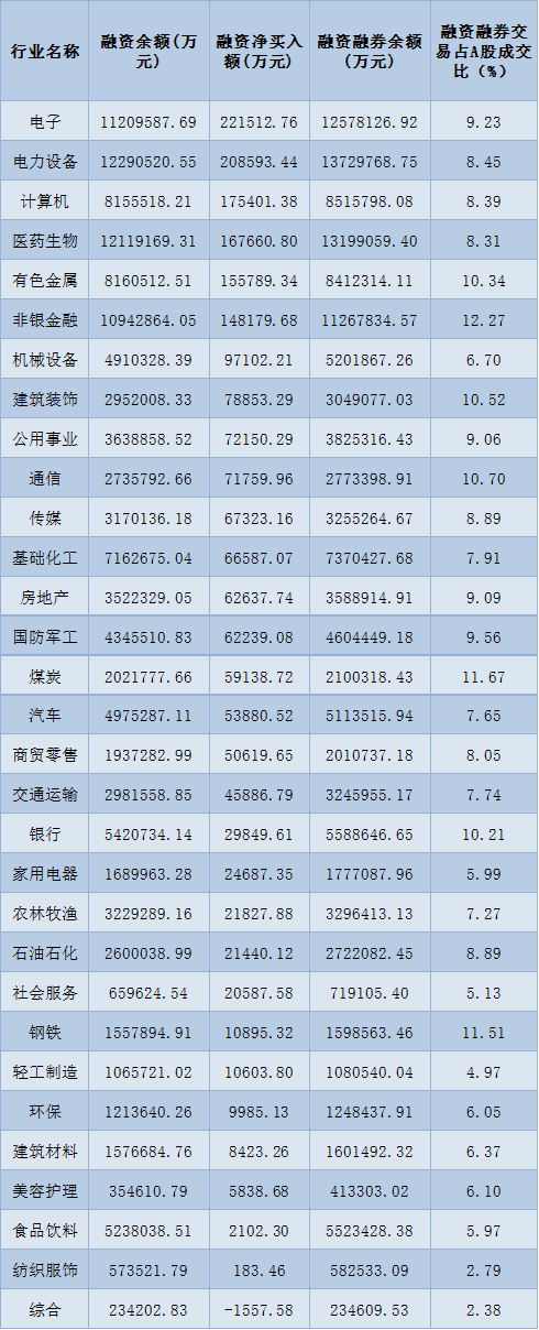 表:1月30日申萬一級行業(yè)兩融交易情況: