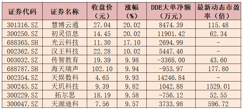 表:2月1日ChatGPT概念板塊漲幅排名前十的個(gè)股一覽