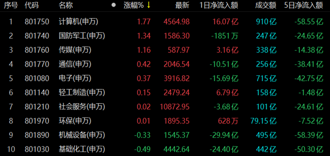 漲停股方面,今日有41只個股以漲停價報收,其中,有14只個股,股價已連續(xù)上漲超過6個交易日;跌停方面,有9只個股跌停價報收。從申萬一級行業(yè)看,計算機行業(yè)漲停股數(shù)量居首,為9只,傳媒緊隨其后,漲停股數(shù)為5只,輕工制造、機械設(shè)備和電子等行業(yè)漲停股數(shù)均為4只。