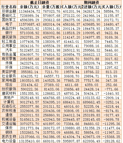 表:2月23日申萬一級行業(yè)兩融交易情況:
