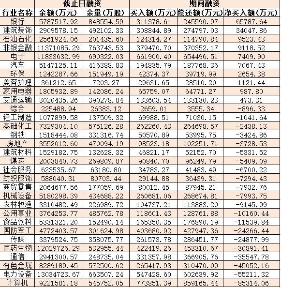 表:3月7日申萬一級行業(yè)兩融交易情況: