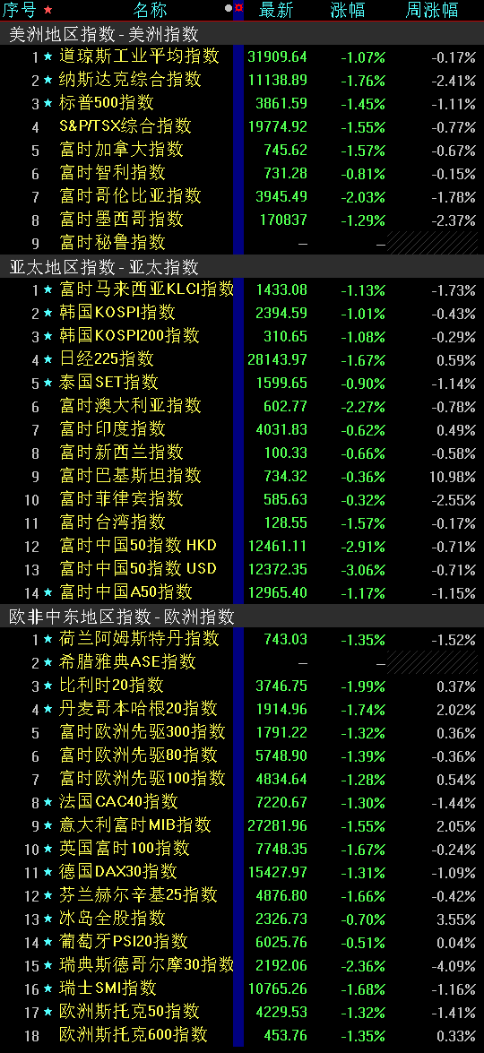 華西證券表示,本周美股市場(chǎng)回調(diào)幅度較大,周內(nèi)和日內(nèi)波動(dòng)加劇。目前標(biāo)普500席勒市盈率為29.71倍,仍明顯高于歷史平均數(shù)和中位數(shù)。由于美股估值壓力未充分消化,美國(guó)企業(yè)盈利下行的壓力仍然存在,且金融系統(tǒng)端的潛在壓力增加,疊加美聯(lián)儲(chǔ)的加息進(jìn)程還將延續(xù),預(yù)計(jì)未來一段時(shí)間美股大盤仍將出現(xiàn)進(jìn)一步回調(diào)??紤]到金融系統(tǒng)端的壓力上升,美股金融股未來一段時(shí)間可能波動(dòng)趨于加劇。此外,多數(shù)美股成長(zhǎng)行業(yè)和價(jià)值行業(yè)將會(huì)面臨進(jìn)一步壓力。建議現(xiàn)階段暫時(shí)對(duì)美股市場(chǎng)采取偏謹(jǐn)慎的觀望態(tài)度。本周歐洲多數(shù)市場(chǎng)出現(xiàn)回調(diào)??紤]到美股回調(diào)壓力的聯(lián)動(dòng)因素,疊加歐洲經(jīng)濟(jì)趨于進(jìn)一步疲軟且流動(dòng)性趨于進(jìn)一步收緊,未來一段時(shí)間歐洲多數(shù)重要市場(chǎng)指數(shù)還將出現(xiàn)回調(diào);前期回調(diào)幅度不夠充分的德國(guó)DAX、法國(guó)CAC40、英國(guó)富時(shí)100、意大利富時(shí)MIB等歐洲多數(shù)重要市場(chǎng)指數(shù)容易出現(xiàn)進(jìn)一步的明顯補(bǔ)跌。此外,加拿大S&P/TSX綜合指數(shù)、澳洲標(biāo)普200、日經(jīng)225等發(fā)達(dá)市場(chǎng)還將出現(xiàn)波動(dòng)。考慮到經(jīng)濟(jì)仍存在一定壓力,且美聯(lián)儲(chǔ)加息進(jìn)程還在推進(jìn),一些拉美、東南亞等海外新興市場(chǎng)股債匯市場(chǎng)還將受到一定沖擊。