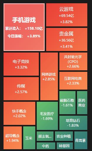 熱點方面,截至3月20日上午收盤,手機游戲、貴金屬等行業(yè)漲幅居前。另外,中藥、培育鉆石等行業(yè)跌幅居前。