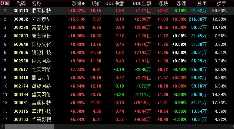 具體看,截至3月20日上午收盤,手機游戲板塊漲幅居首達3.89%。其中,順網(wǎng)科技、神州泰岳、富春股份等概念股漲幅均超10%。