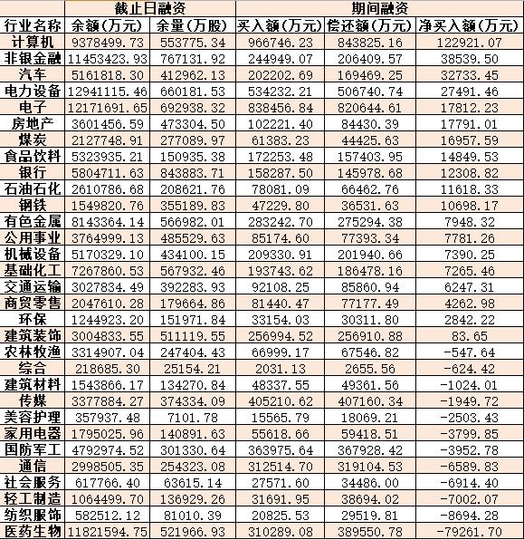 表:3月21日申萬(wàn)一級(jí)行業(yè)兩融交易情況: