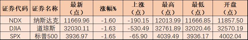 表:美股三大指數(shù)3月22日市場表現(xiàn)一覽