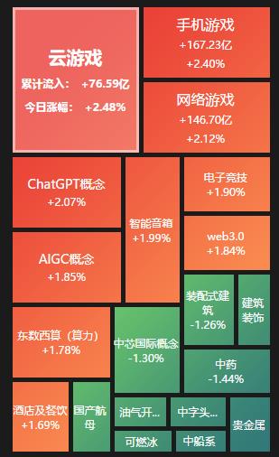 具體看,截至3月24日上午收盤,云游戲板塊漲幅居首達(dá)2.48%。其中,盛天網(wǎng)絡(luò)、湯姆貓等概念股漲幅均超8%。