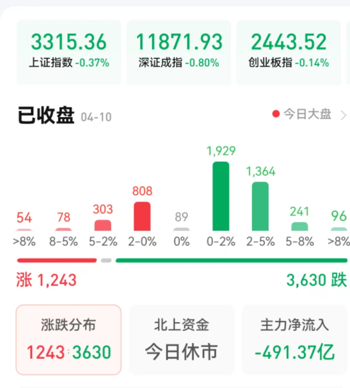 周一(4月10日),A股三大股指震蕩回落。截至收盤,上證指數(shù)跌0.37%報(bào)3315.36點(diǎn),深證成指跌0.8%報(bào)11871.93點(diǎn),創(chuàng)業(yè)板指跌0.14%報(bào)2443.52點(diǎn),科創(chuàng)50指數(shù)跌2.74%;兩市合計(jì)成交額達(dá)12255億元,連續(xù)第五個(gè)交易日突破1萬億元。總體上看,兩市個(gè)股跌多漲少。其中,漲停個(gè)股達(dá)22只,跌停個(gè)股達(dá)25只。