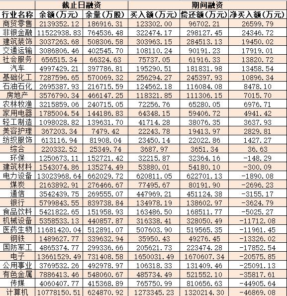 表:4月14日申萬一級行業(yè)兩融交易情況: