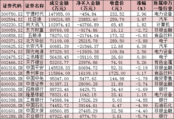 表:今日滬、深股通前十大成交活躍股交易情況: