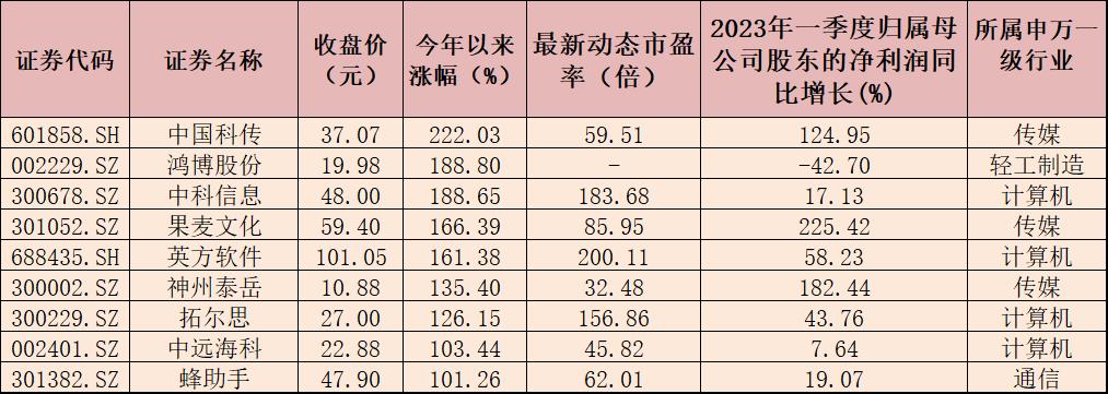 表:今年以來漲幅超100%的數(shù)字經(jīng)濟(jì)概念股一覽
