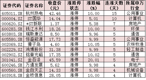 表:連續(xù)上漲4日且今日收盤漲停個(gè)股情況: