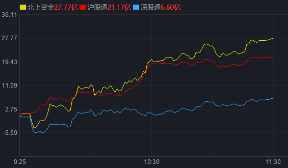 從資金面來看,6月7日上午,北上資金凈買入金額達27.77億元,其中,滬股通凈買入21.17億元,深股通凈買入6.60億元。