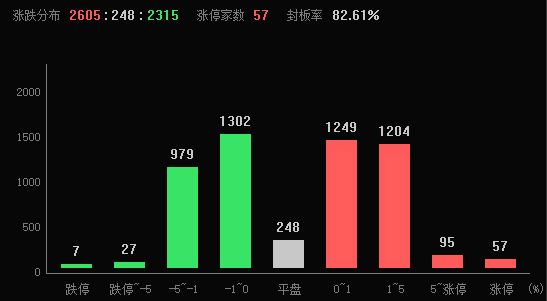 6月7日早盤,A股三大指數(shù)震蕩分化,滬市表現(xiàn)相對強勢。截至上午11:30,上證指數(shù)漲0.02%,報3195.88點,深證成指和創(chuàng)業(yè)板指跌幅分別為0.37%和1.32%;滬深兩市成交額合計5022.5億元??傮w來看,A股市場個股漲多跌少,有2605只上漲,2315只下跌,漲跌停方面,有57只個股漲停,跌停股7只。