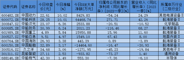 表:6月27日,中船系概念板塊個(gè)股行情一覽