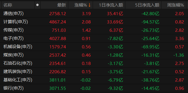 通信行業(yè)漲3.19%居首