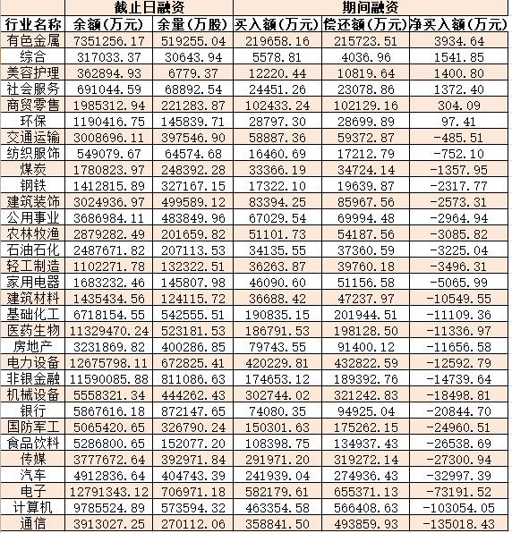 表:7月20日申萬一級行業(yè)兩融交易情況