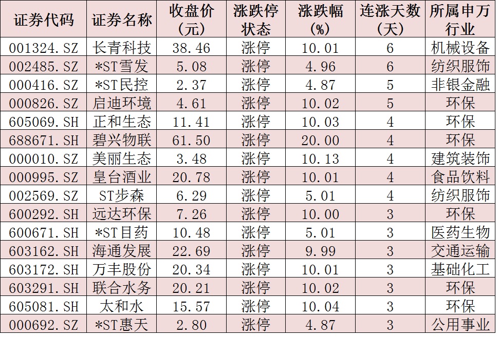 表:連續(xù)上漲3日且今日收盤漲停個股情況: