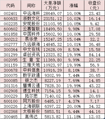 表:8月22日受到5000萬元以上大單資金追捧的數(shù)據(jù)要素概念股