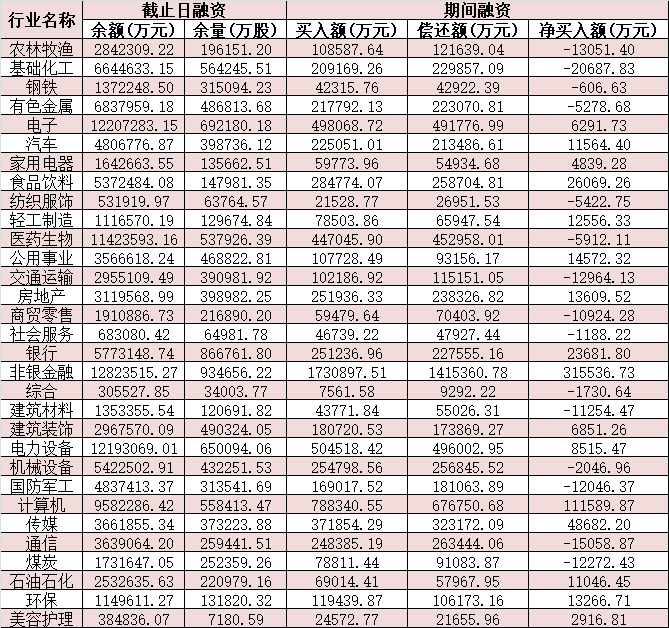 表:8月28日申萬一級行業(yè)兩融交易情況